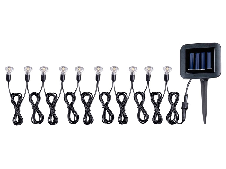 LINK TO KENROY HOME DESCRIPTION: http://www.kenroyhome.com/pages/product_pages/60506.html Pro: High Quality Solar Panel All connectors well constructed, screw type with rubber O rings. Ample cord between lights. Currently have 3 sets of 10 each lamps , strung along Decking Rail. Quite bright, and cast light down onto the decking floor. With an occasional wiping of the Solar panel (to remove pollen and dust) all 3 light strings stay on well into the night. Con: Required 60509 12 foot Extension cord, to move Solar Panel to a full sun area. Could not find at Amazon. Minor complaint: Birds like to roost on the Panels .. moving them into a vertical position ..... as ball joint at top of stake is rather loose. Will consider inserting a piece of "Teflon pipe thread tape" between ball and socket. (Alternative may be to get a cat ) Mounting stake, designed for ground (earth) mount only. Necessary to drill an appropriate hole into a wood extender, for Deck Rail mounting. A metal or plastic clamp could be included for "above ground" mounting of Solar Panel.... e g on decking rails or posts. FOLLOW-UP: Unusual Problem: A squirrel chewed off a LED Lamp, about half-way down the string of lights, and then proceeded to dine on the Lamp, on a deck chair. The preceding 5 lamps still operate. Fortunately, individual strings of 10 lamps , without the solar panel are available , as part number 60508.