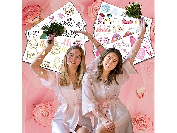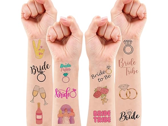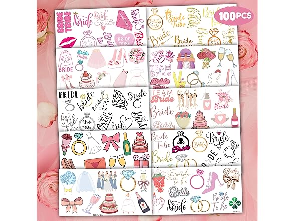 100 PCS Funny Bride Tribe Temporary Tattoos Sticker Birthday Decorations Rings Bridesmaid Bachelorette Themed Party Favors Supplies Bridal Shower Bride To Be Girls Woman Adult Gifts