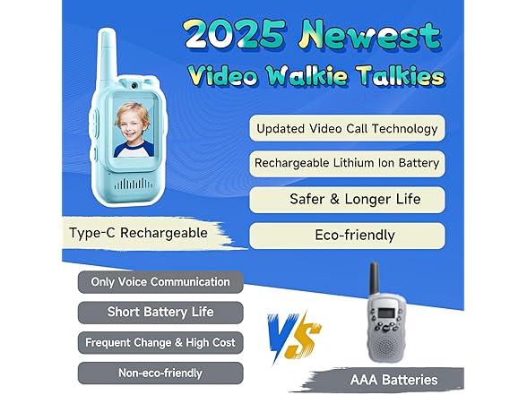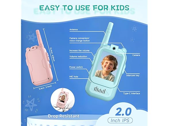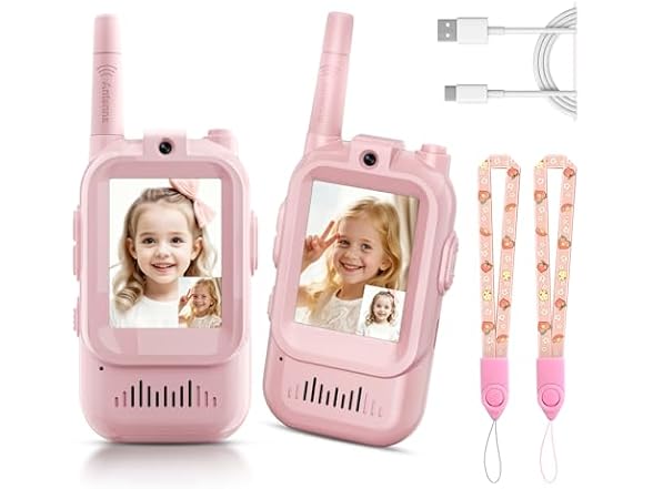 Kids Video Walkie Talkies, 2 Pack Long Range Walkie-Talkie for Kids, Rechargeable Video Call Toys for Indoor, Camping, Hiking, Travel, Christmas Birthday Gift for Boys Girls Age 3-5