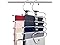 - SPACE SAVING PANTS HANGERS : 5 tier trousers hangers. Each hanger can at least hold up 5 jeans, trousers or other clothing. Maximize to save your closet space and keep it clean and orderly. Strong bearing strength and won't be easy to be out of shape