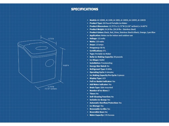 - Compact and Portable - The compact size of the the NewAir AI-100BK ice maker makes it the perfect size to set up on counters or tabletops. Move it where you need it, indoors or out.