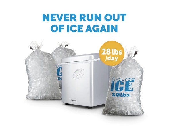- Countertop Design, Outsized Production - The NewAir Countertop Ice Maker fits neatly on your kitchen counter and makes 28 pounds of ice each day to keep you stocked for all your entertaining needs. That’s almost the same as purchasing three 10lb bags of store-bought ice in a single day. Choose from four great colors to match your decor.