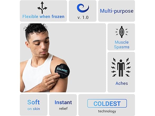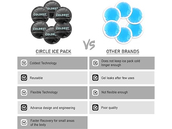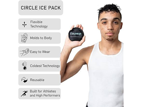 2Pk Coldest Small Reusable Ice Packs - Hot Cold Compress for Injuries - Flexible Gel Ice Pack - Kids Ice Packs - Face/Eye Ice Pack - Nipple Breastfeeding Gel Pads - Round BlackSoft Ice Packs