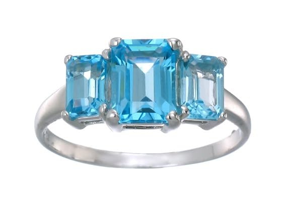 Sterling Silver 3 Stone Swiss Blue Topaz Ring (3 CT). The Blue Topaz stones are Heat Treated.