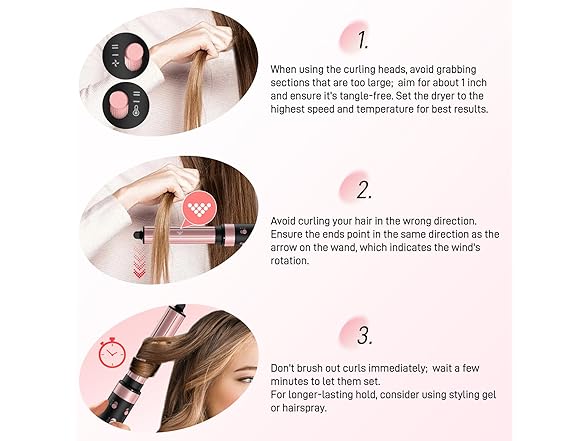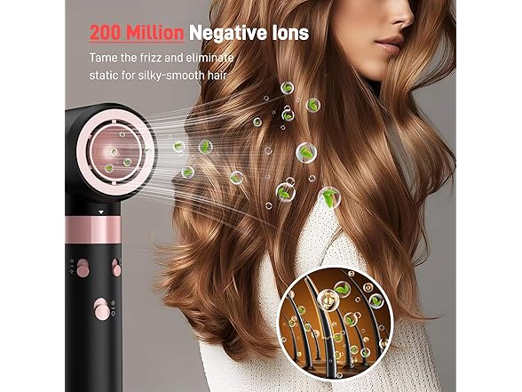 - 3 In 1 Air Curler & Ionic Hair Dryer Set: Transform your hair styling routine with our innovative airwrap hair styler, designed to create stunning curls, and half your drying time. This versatile hair dryer styler set eliminates the need for multiple devices, saving you budget and space while allowing you to achieve salon-quality results at home. Enjoy the freedom to explore various hairstyles without the hassle of juggling different tools, making your styling routine more enjoyable and efficient.
