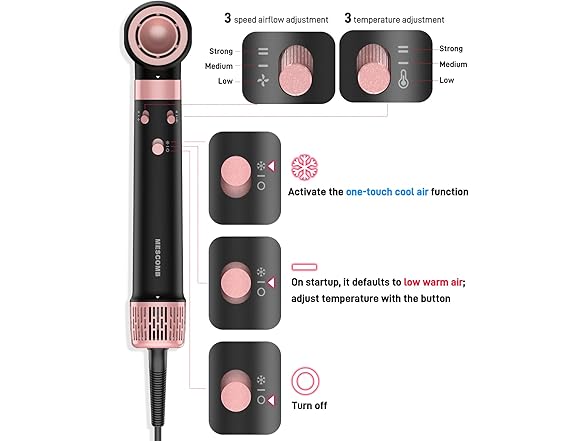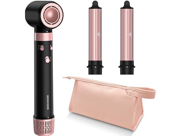 MESCOMB Air Wrap Hair Styler - Your Ultimate 5-in-1 Styling Solution Transform your hair styling routine with our innovative air wrap hair styler, designed to create stunning curls, straighten, volumize, and dry your hair effortlessly. Say goodbye to multiple tools and hello to salon-quality results at home. With multiple attachments, you can explore various hairstyles without the hassle of juggling different devices. Key Features Powerful 1400W Motor: Our air wrap hair styler features a powerful 1400W motor that dries and styles your hair in just minutes. Unlike traditional dy-sons airwrap or shark hair dryer airwrap, our styler combines the power of a dy-sons hair dryer airwrap with the precision of an air wrap curler, ensuring professional results without heat damage. Advanced Coanda Technology: Our air wrap hair styler uses Coanda Technology to automatically wrap and curl your hair, making it easy to achieve salon-quality curls without the effort. With two interchangeable curling irons (1 inch), you can create stunning curls in different directions, whether you're aiming for tight spirals or loose waves. Smart Heat Control: Our air wrap hair styler is designed with intelligent heat control, offering 3 temperature settings and 12 airflow levels. The advanced negative ion technology minimizes frizz and heat damage, leaving your hair smooth, glossy, and full of life. Lightweight & Ergonomic Design: The lightweight design and comfortable grip make it easy to use, reducing fatigue during styling sessions. The curling iron 1 inch attachment is perfect for creating tight curls, while the air curler for hair is ideal for loose waves. The cord is long enough for convenient use and rotates freely without tangling, making it easy to style your hair from any angle. Perfect for All Hair Types: Whether you have straight, wavy, or curly hair, our air wrap hair styler is your go-to tool for any styling need. It’s designed to work for all hair types, helping you achieve salon-quality results. The hair wrap for curls feature ensures that your curls are defined and long-lasting, while the air wrap curler attachment adds volume and texture to your hair. Why Choose MESCOMB Air Wrap Hair Styler? Our air wrap hair styler is not just another styling tool; it’s a game-changer. With its advanced features and user-friendly design, it’s perfect for anyone looking to elevate their hair styling routine. Whether you’re a busy professional or a styling enthusiast, this tool is designed to make your life easier and your hair look fabulous. What’s Included? 1 x Air Wrap Hair Styler 2 x Interchangeable Air Wrap Curler Attachments 1 x Curling Iron 1 Inch Attachment 1 x User Manual Customer Service At MESCOMB, we stand behind the quality of our products. Enjoy peace of mind with our reliable customer service—contact us on Amazon, and our team will respond quickly and effectively. Your satisfaction is our top priority, and we’re committed to providing you with the best styling experience possible.