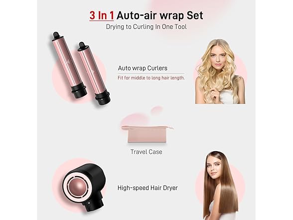 - Travel Friendly & Portable: The 3 in 1 air styler hair curling set includes a sleek travel case (a $20 value), perfect for protecting and storing your styler, and making travel a breeze. Effortlessly fits into your luggage, hair dryer in lightweight design ensures easy portability. The stylish case protects your airwrap set and keeps all attachments organized for quick access. Achieve salon-quality curls and styles wherever you go—whether you're globetrotting or on a business trip. Look your best anywhere, anytime!