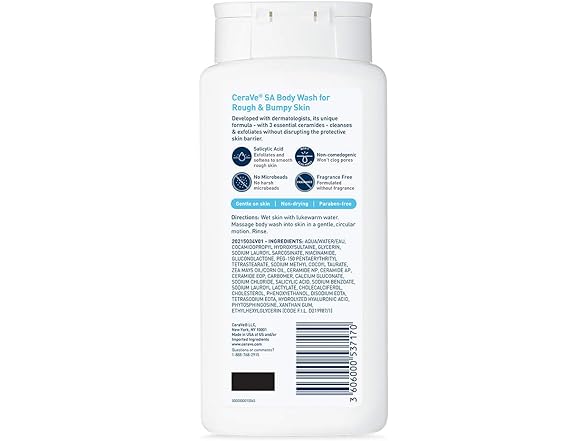- SALICYLIC ACID SKIN CARE Massage CeraVe Salicylic Acid Body Wash into skin in gentle, circular motions with a washcloth or shower loofah. Can be paired with CeraVe Salicylic Acid Moisturizing Cream for Rough and Bumpy Skin to moisturize & exfoliate.