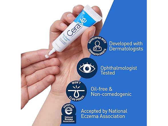 • DEVELOPED WITH DERMATOLOGISTS & OPHTHALMOLOGIST TESTED Tested for use around the eye area & accepted by the National Eczema Association. CeraVe brand is developed with dermatologists & has products suitable for dry skin, oily skin, acne-prone, & more