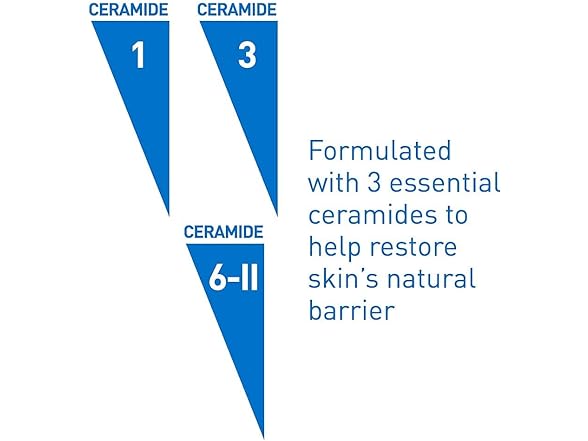 • 3 ESSENTIAL CERAMIDES Ceramides are found naturally in the skin and make up 50% of the lipids in the skin barrier. All CeraVe products are formulated with three essential ceramides (1, 3, 6-II) to help restore and maintain the skin’s natural barrier