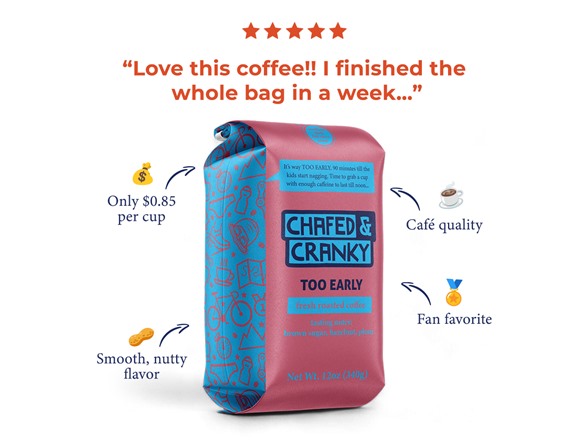 - (3 Pack) Chafed & Cranky Coffee, Whole Bean, "Too Early"