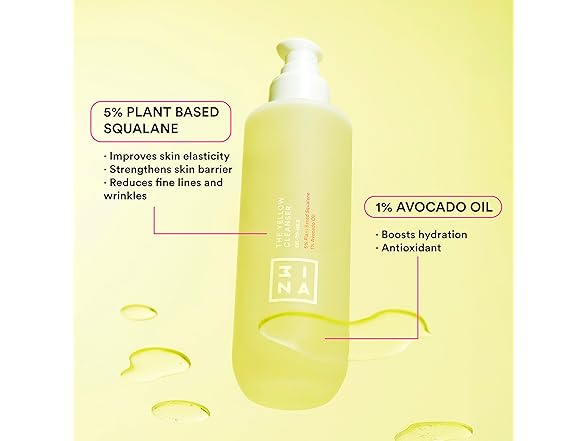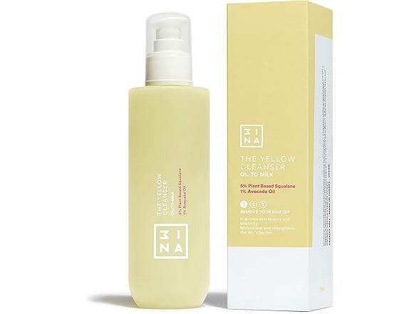 3INA MAKEUP - The Yellow Cleanser - Oil Cleanser 5% Plant-Based Squalane + 1% Avocado Oil - Cleansing Oil Face for Improve Skin Texture Elasticity & Care - Vegan - Cruelty Free