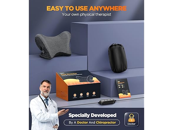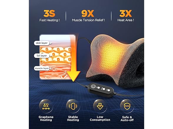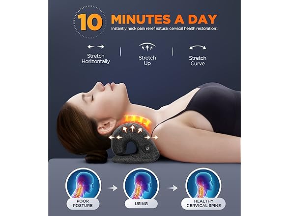 3S Heated Neck Stretcher for 9X Pain Relief, 3X Larger Graphene Heating Area w/Magnetic Therapy Case, Cervical Traction Device Pillow, Neck and Shoulder Relaxer Support for TMJ Spine Alignment