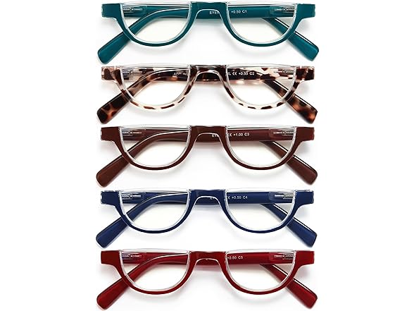 - 👓【5 Pack Half Frame Reading Glasses】These cute reading glasses are designed by a professional designer. The front frame of the glasses is a fashionable Half Frame style, specific five color options and exquisite craftsmanship to bring you a high-quality reading experience.You can also put a pair of glasses wherever you need them for use at any time.