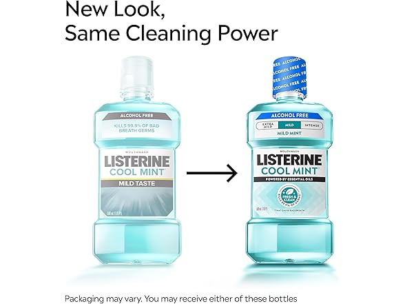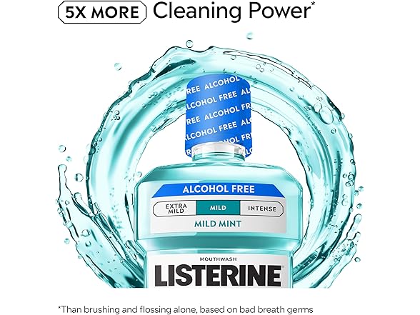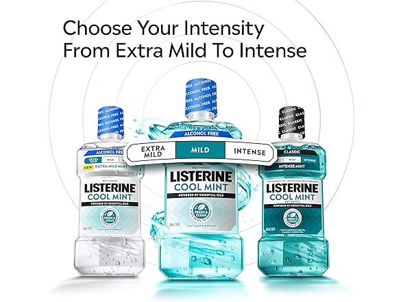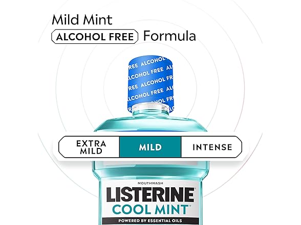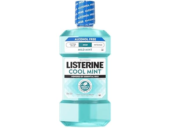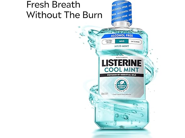 (6-Pack) Listerine Cool Mint Alcohol-Free Mild Mouthwash, Oral Rinse Kills 99.9% of Germs That Cause Bad Breath, Less Intense Taste, Mild Mint Flavor, 500 mL