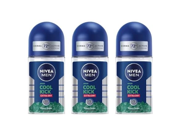 (6-Pack) Nivea Men Roll On Deodorant Cool Kick Extra Dry Freezy Green 50mL Long-Lasting Freshness Anti-Perspirant 48H Protection Quick Drying Formula Gentle on Skin for Men