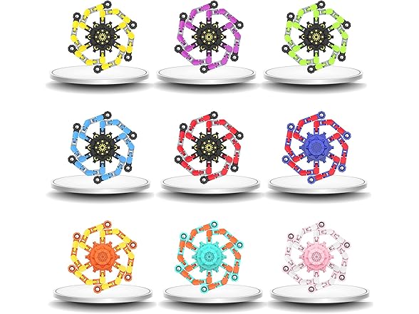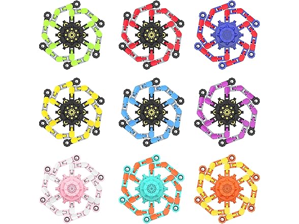 - TRANSFORMABLE SPINNERS---Each spinner has 6 deformable chains, which provide infinite shape possibilities for the spinners to transform into various spinner shapes or cell phone holders. Kids change shapes through their imagination, a process that exercises good hand-eye coordination, quick reaction, logical thinking, creativity and imagination