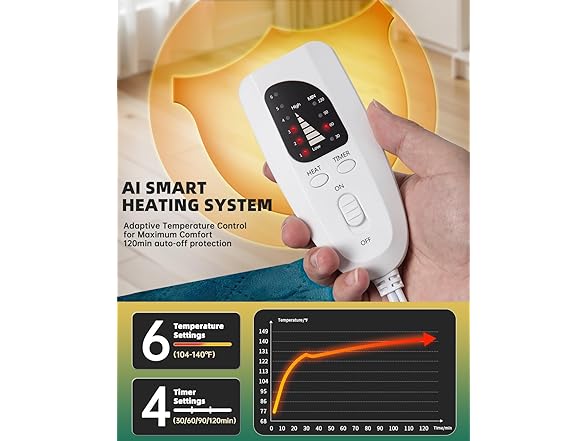- Customizable Comfort -FSA HSA eligible heat pad Enjoy 6 precise heat settings (108°F-158°F) and 4 auto-shut off timers (30/60/90/120 mins). The LED controller with memory function remembers your preferred setting for convenience.Customizable Comfort -FSA HSA eligible heat pad Enjoy 6 precise heat settings (108°F-158°F) and 4 auto-shut off timers (30/60/90/120 mins). The LED controller with memory function remembers your preferred setting for convenience.