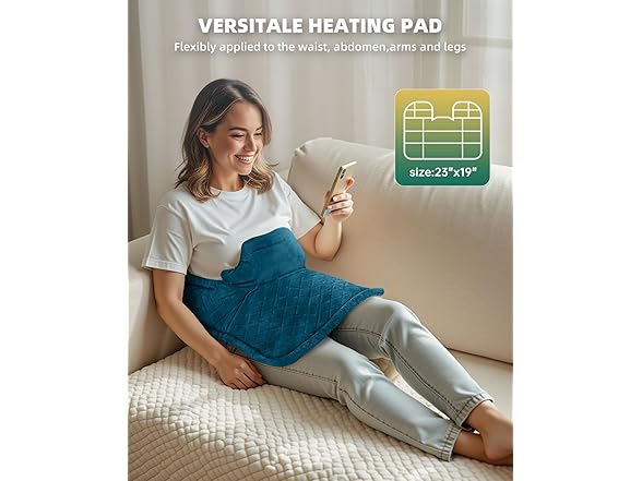 - ETL Certified Safety & Auto Shut-Off for Peace of Mind- This ETL-certified heating pad features built-in overheat protection for added safety. If you forget to set a timer, the pad will automatically shut off after 30 minutes, ensuring safety and preventing overheating. The weighted edges and snap fasteners keep the pad securely in place while you move, providing comfort without readjustments.