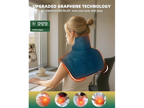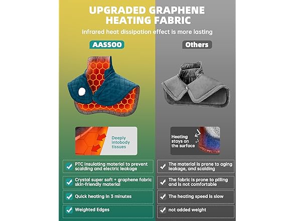 - Upgraded Deep Penetrating Heat Therapy - Our graphene-infused heating pad delivers far-infrared heat that penetrates 3X deeper than ordinary pads, effectively relieving muscle tension, arthritis pain, and stiffness in neck, shoulders, and back.Constant temperature energy-gathering heating sheet, longer-lasting warmth.