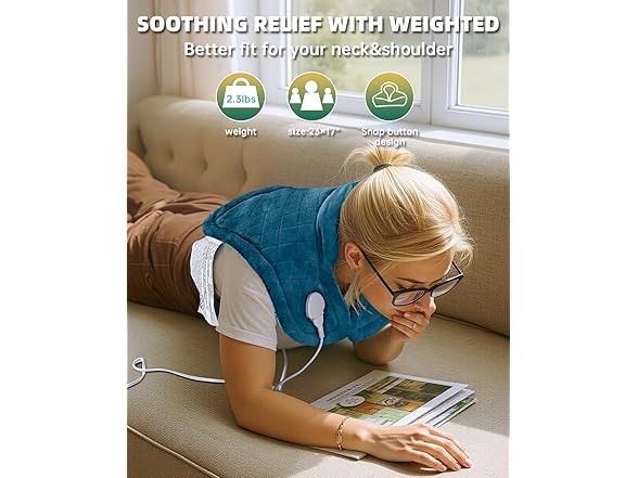 Graphene-Infused Heating Pad for Neck and Shoulders and Back Pain Relief,Upgraded Weighted 3X Deeper Heat Therapy Wrap with 6 Temperature Settings & 4 Auto-Off Timers,Large Heated Wrap, 23"x19"