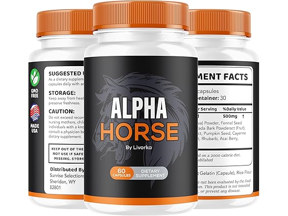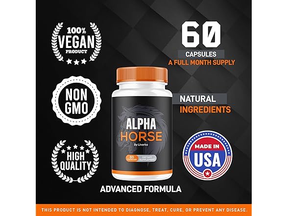 Alpha Horse Pills for Men, Natural Premium Formula, 60 Capsules for 1 Month