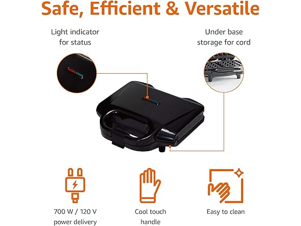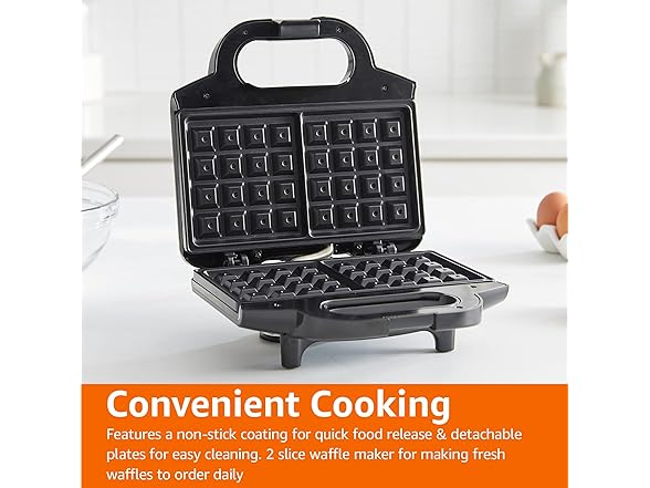 Amazon Basics 2-Slice Waffle Maker with Non-Stick Coating, Easy to Clean, 700W, Black