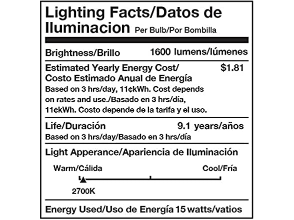 - This bulb costs only $1.81 per year to operate (based on 3 hours/day, 11 cents/kWh) making it an economical alternative to incandescent bulbs
