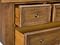 - Four drawers with raised border detail and antique bronze knobs are perfect for storing away clutter