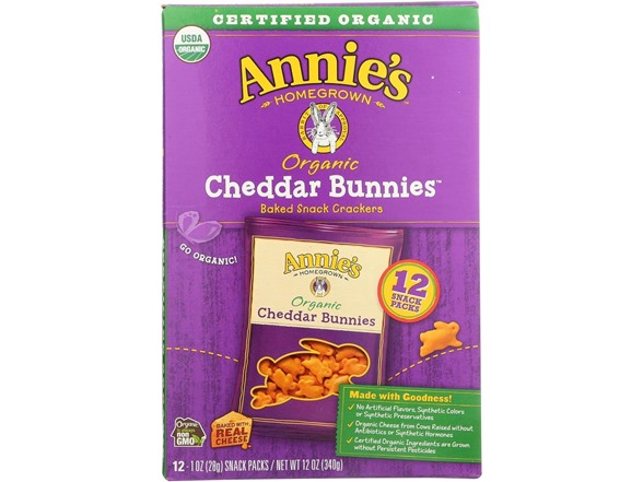 - ANNIE'S HOMEGROWN, Organic Bunny Cracker Snack Pack, Cheddar Size 12/1 OZ