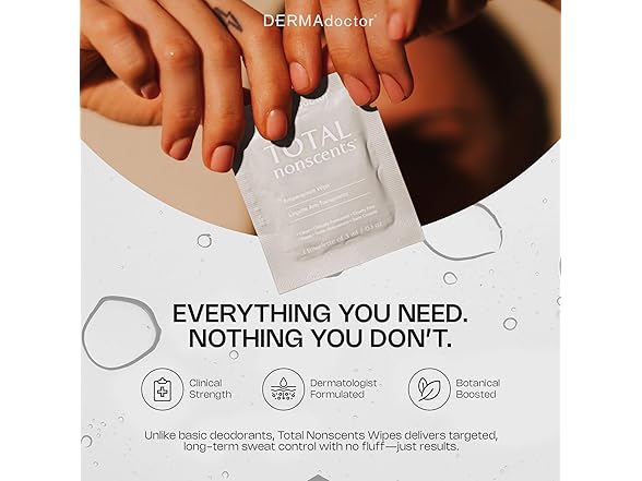 Swipe your way to a blissfully dry experience with a technique so simple, it only takes the swipe of a wipe. Purify your presence and help reduce embarrassing sweating and wetness — while channeling your most confident energy. This patented, harmonious union of antiperspirant therapy and botanicals promotes a supremely dry state of consciousness. Clean + Clinical + Cruelty-Free Dermatologist Tested & Approved · Allergy Tested · Non-Irritating · Non-Drying · Non-Comedogenic Synthetic Fragrance Free · Gluten Free · Paraben Free · No Animal Testing Formulated and filled in the USA