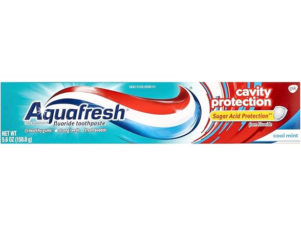 In the Box: (1) Aquafresh Cavity Protection Fluoride Toothpaste, Cool Mint 5.6 oz