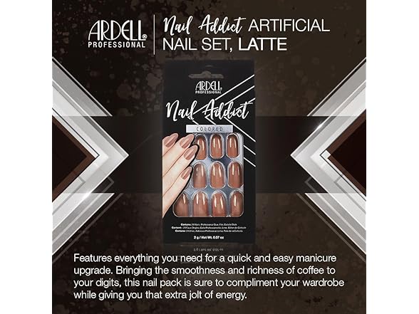 Ladies, there’s nothing more chic than a nude manicure. And with this amazing set from Ardell Nail Addict in Latte, it’s about to be your new go-to look for the season! This premium artificial nail set features a long length, almond shape, and a glossy dark nude color that's as yummy as your favorite cafe au lait. Features everything you need from prepping to designing your nails for a quick and easy at-home manicure upgrade. Create a salon-worthy manicure that will have everyone swooning! Nails so chic and classic, you'll skip the salon forever!