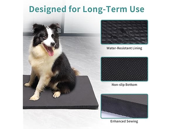 - [Ruggedly Tested - Indestructible Dog Bed] Is your furry friend a relentless digger and chewer? You may need this chew-proof dog bed. It undergoes rigorous testing to prevent all types of dog damage, ensuring unparalleled reliability. This dog mat is made from upgraded bite-resistant fabric, tough and indestructible, able to withstand even the most determined chewers. No more worrying about your dog being left on the floor or a pile of shredded fabric and foam.