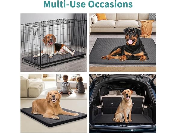 - [Waterproof & Easy to Clean] The sturdy dog crate mattress is protected by a waterproof liner, keeping the foam safe from spills, water damage, and accidents. Convenient extended zipper design, easy remove the cover in seconds. You can either wash it directly in the washing machine or gently brush it with some detergent for spot cleaning, keeping the dog bed fresh.