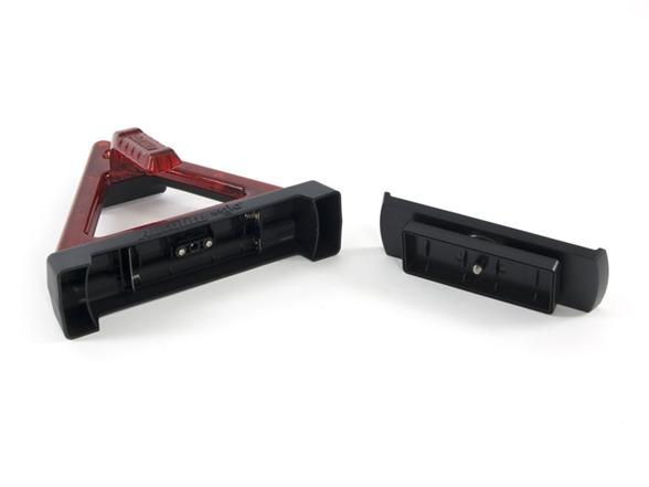 - Can be used as either a bright spotlight/flashlight or as a blinking safety triangle