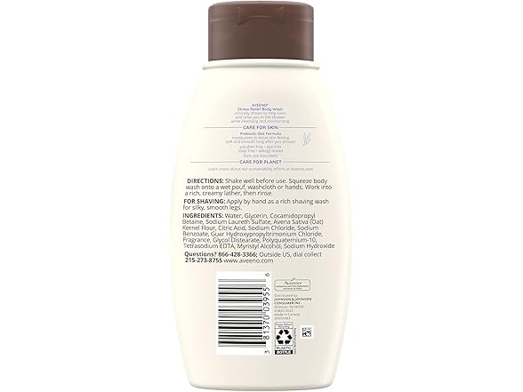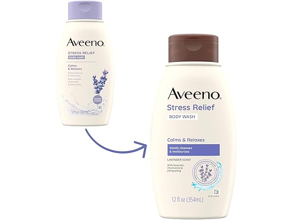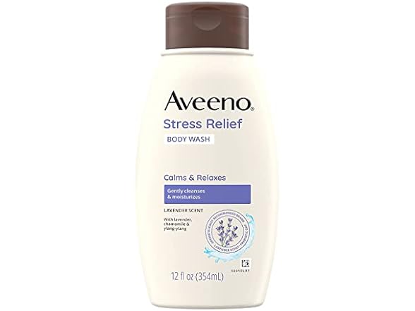 Aveeno Stress Relief Body Wash with Soothing Oat,Lavender, Chamomile & Ylang-Ylang Essential Oils, Hypoallergenic, Dye-Free & Soap-Free Calming Body Wash gentle on Sensitive Skin, 12 fl. oz(Pack of 2)