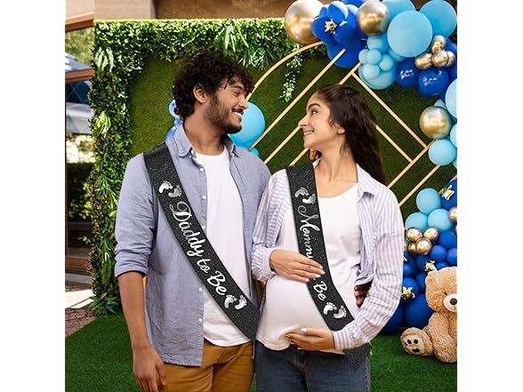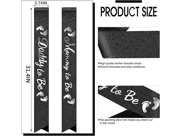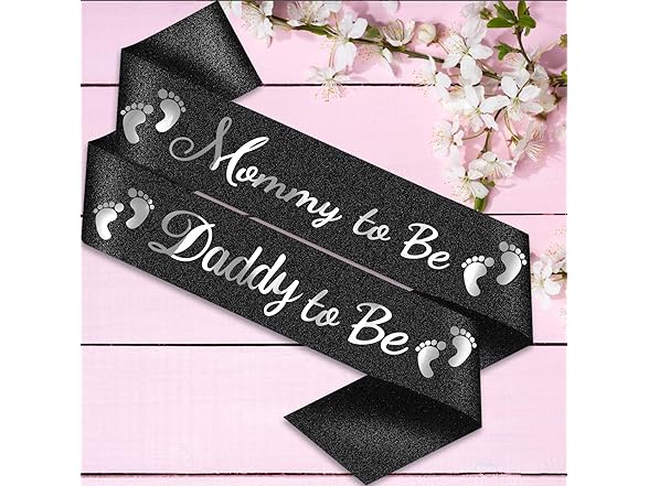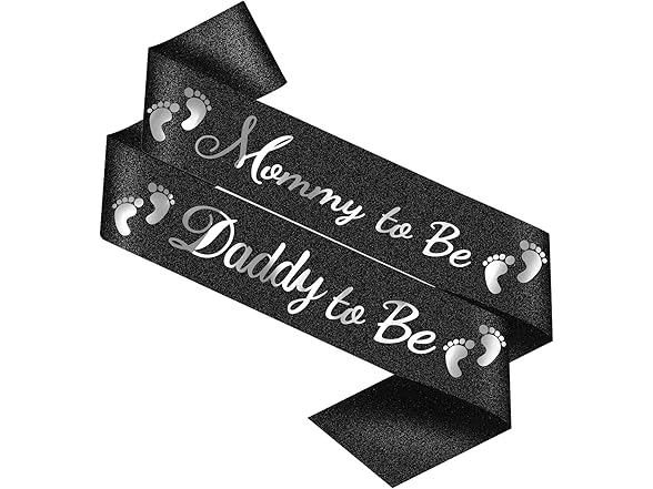 "Mommy to Be" & "Daddy to Be" Baby Shower Sash Black Glitter Sash, Baby Shower Party Gifts for New Mom Dad Gender Reveal Supplies Decorations Favors