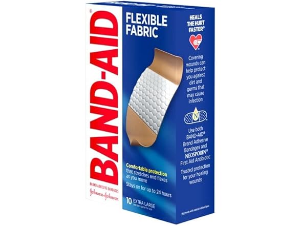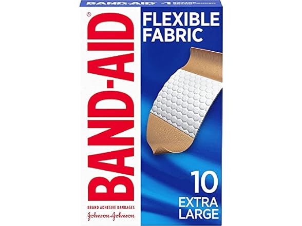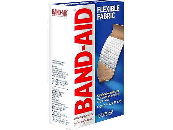 In the Box:- (1) BAND-AID® Brand Flexible Fabric Bandages XL, 10 Count