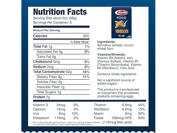 In the Box:- (1) Barilla Penne Pasta, 16 oz. Box - Non-GMO, Made with Durum Wheat Semolina - Kosher Certified