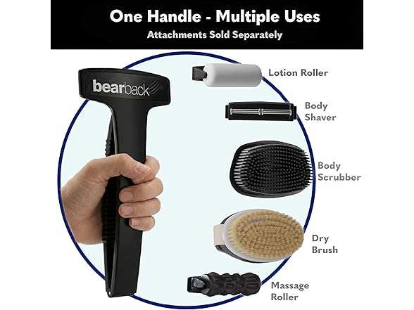 - NOT JUST A SCRATCHER - A SELF-CARE SYSTEM: Swap the scratcher head for Bearback attachments like a lotion applicator, dry brush, body scrubber, massager, or even shaving cartridges! One handle, endless feel-good self-care options.