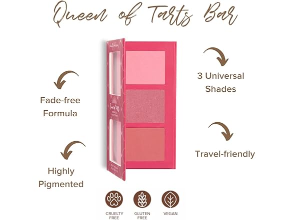 Beauty Bakerie Queen of Tarts Bar Mini Makeup Palette, Three Universal Shades of Blushes Makeup, Travel Size