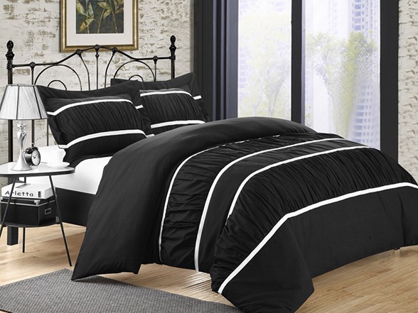 Ruffles and Ruching is this extremely sophisticated 3 piece duvet cover is all about. Fill it with your favorite Down or Alternative comforter and create pure luxury on any bed. Detailed ruffled and ruching technique are extremely luxurious details that complement any decor and add old world charm to any guest or master suite. Full zipper closure makes this a breeze to wash and maintain. 2 Bonus shams are added to complete this perfect look.