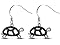 Turtle jewelry is always in! Be sure to get these trendy black diamond turtle earrings. Diamond content is .02 carats in black color and I3 clarity. These earrings are crafted in solid sterling silver and have fish hook backs. They dangle down about a 1/2 inch.