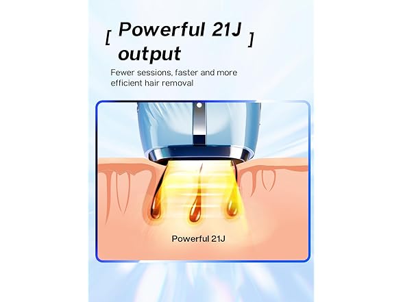 - 【21J Powerful Energy】We redefine efficiency in IPL hair removal with our powerful 21J energy output over a 3cm² window. This high-energy approach more effectively targets hair follicles on various body parts, including the face, bikini area, armpit, legs, back, chest, arms, chin, and lips, noticeably cutting down the frequency of treatments needed