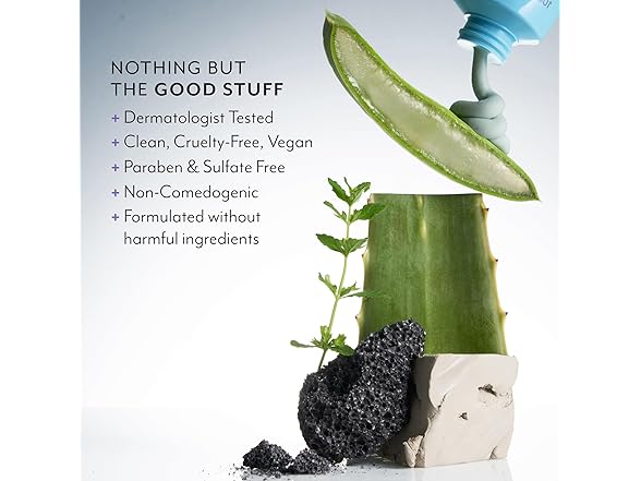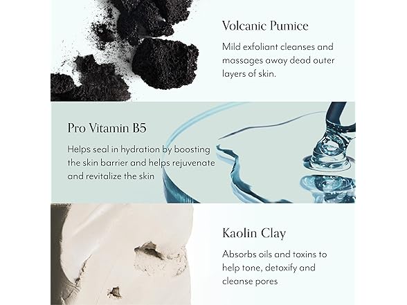 - Fine volcanic pumice purifies and exfoliates, while aloe leaf soothes and peppermint refreshes skin