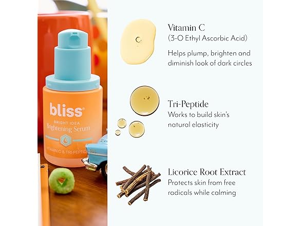 (1) Bliss Vitamin C + Tri-Peptide Bright Idea Serum – 15% Brightening + Barrier Boost Complex for Radiant, Firm Skin – Anti-Aging Face Serum Boosts Collagen & Elasticity - 1 fl oz