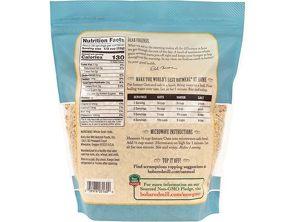 In the Box:- (1) Bob's Red Mill Instant Rolled Oats, 32-ounce (Pack of 4)