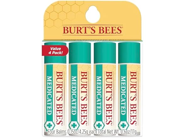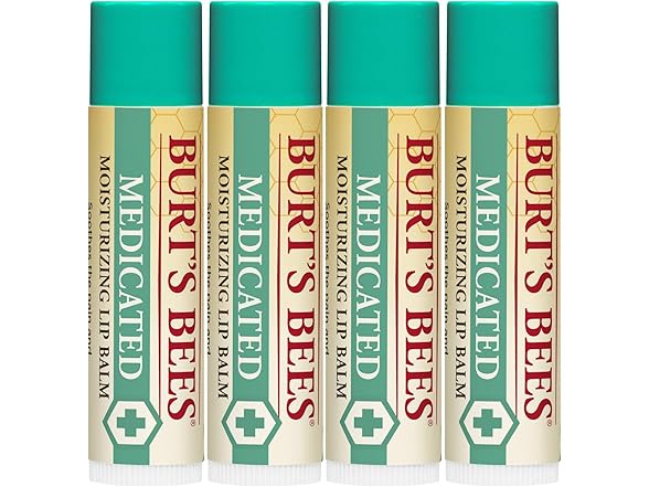 - MEDICATED LIP BALM: One package contains four 0.15 oz. lip balm tubes of Burt’s Bees Medicated Lip Balm to refresh, calm and ease troubled lips