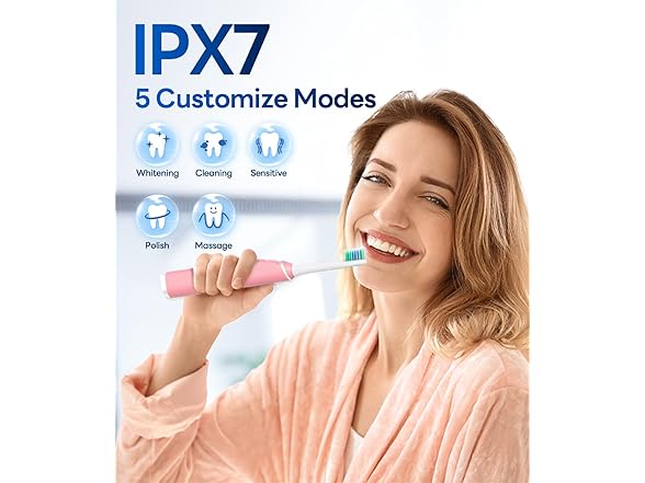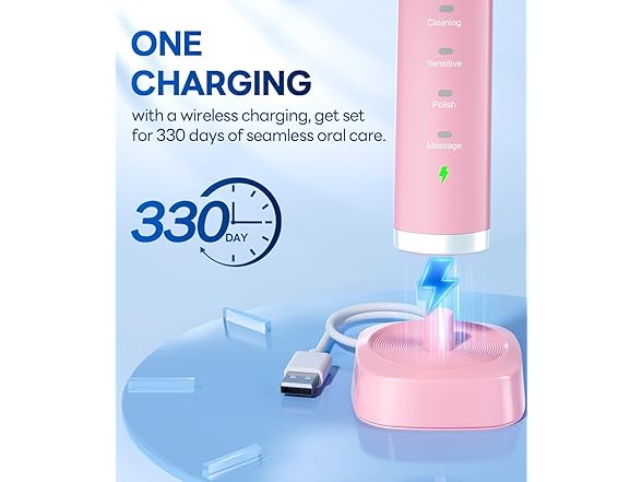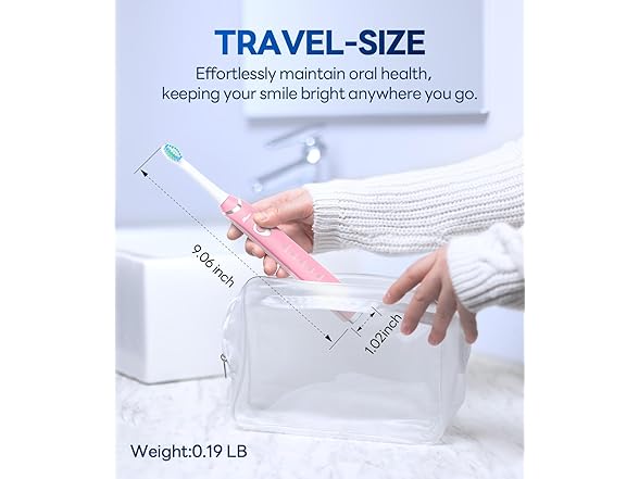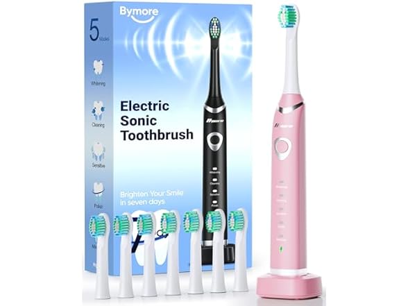 Bymore Electric Toothbrush for Adults,Travel SonicToothbrush with 8 Replacement Heads, Ultra Clean RechargeableToothbrush Portable Electric Toothbrush-Pink